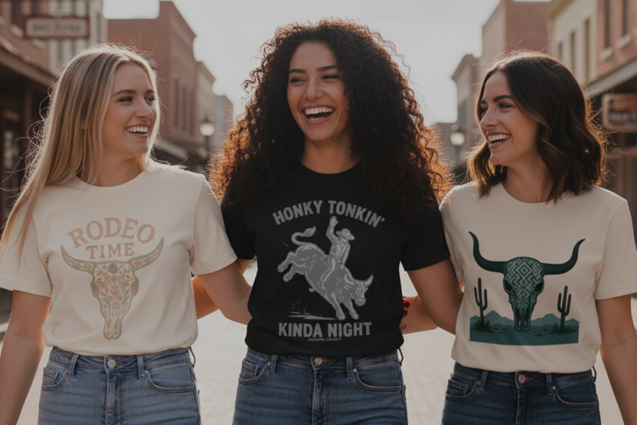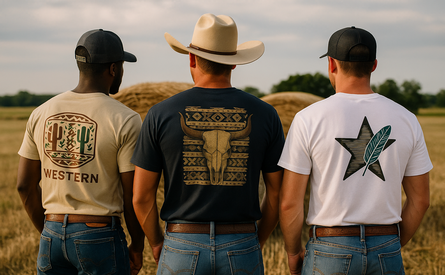 There's nothing worse than showing up to find great designs on the color you don't need. That's why we brought print on demand to western apparel.